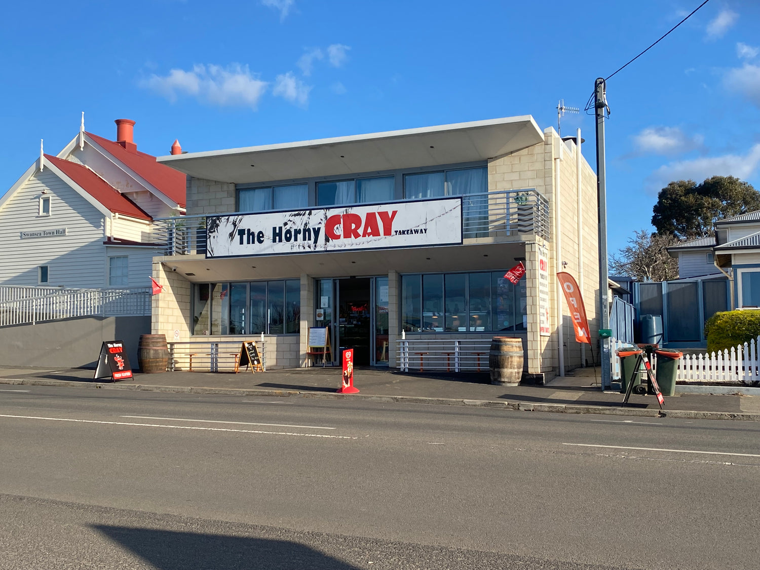 The Horny Cray is in the main street of Swansea and can offer you a casual dining experience while you enjoy the outstanding views of the historic township and the magnificent Great Oyster Bay. The Horny Cray is also directly opposite a beautiful beach, a large boat ramp, a lush park, and a wonderful playground, all with magnificent views of the world-renowned Freycinet National Park and the spiritual and optic wonder of The Hazards. All these superb areas mentioned are available to you as another option of where to sit, relax and enjoy your meal from The Horny Cray!